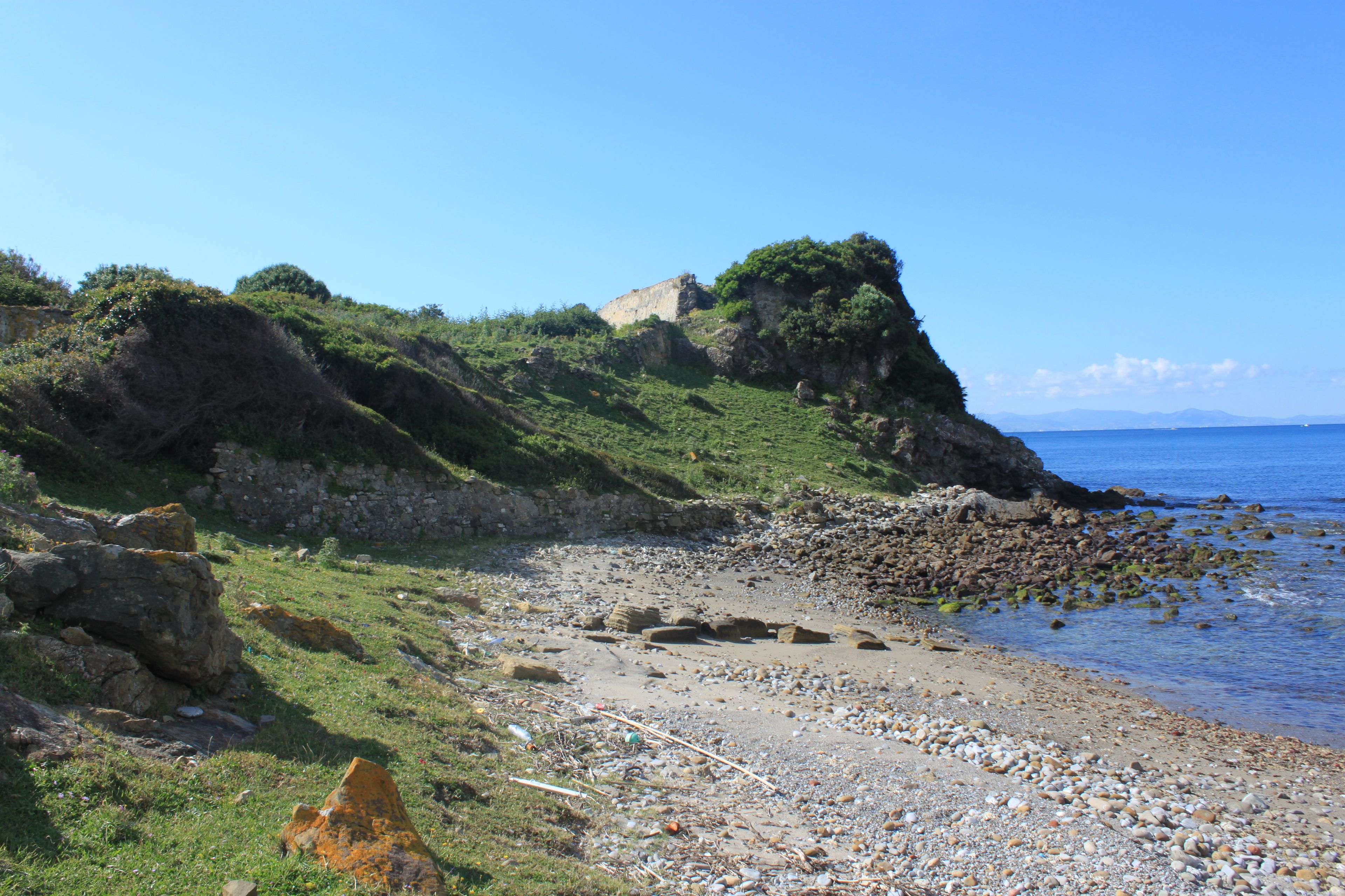 The stone fortress stands on elevated ground near the coast, featuring defensive walls and strategic observation points across the maritime routes.