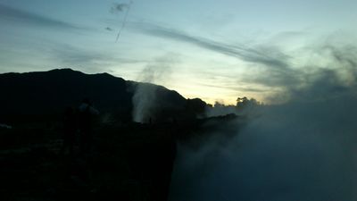 The water jets from these geological formations can reach heights of several meters when waves crash against the cliff face during strong maritime conditions.
