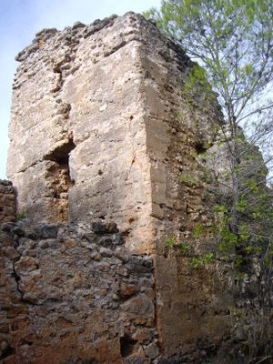 The structure contains a preserved water cistern and remnants of defensive walls that emerge from the water when the reservoir levels decrease.