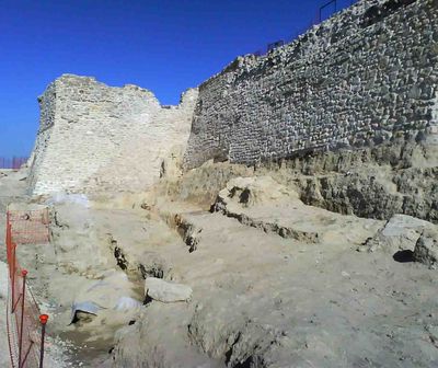 The archaeological site allows visitors to explore different architectural periods through preserved sections of Roman walls and medieval defensive structures.
