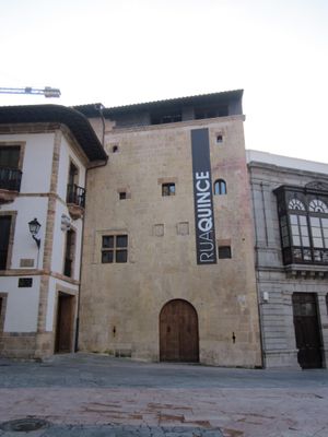 Casa de la Rúa is a palace in the old center of Oviedo with a Gothic stone facade, irregularly spaced windows, and stone balconies that stand out on the street. The building features a grand entrance with a semi-circular arch, while its lower floor serves as an event space and the upper floors remain as a private home.