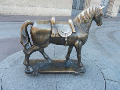 Caballito de La Lonja, Bronze and granite statue at Paseo de Echegaray y Caballero, Zaragoza, Spain