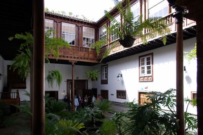 Casa Montañés is a colonial mansion in San Cristóbal de La Laguna built with stone and clay walls, wooden ceilings, and galleries made of tea wood. Three courtyards sit within its footprint, with the primary courtyard containing a stone fountain and a colonnade that runs along its perimeter.