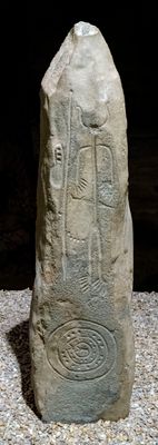 Stele of Magacela, Bronze Age warrior memorial in National Archaeological Museum, Spain.
