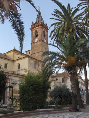 The church stands at the edge of San Sebastian Street, next to Plaza de España, in the center of Campillos.