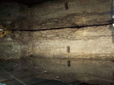 Archaeological excavations beneath Plaza de la Marina revealed the intersection of two distinct wall systems from different historical periods at the same location.