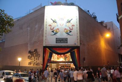 Mercado de San Antón, Food marketplace in Chueca district, Madrid, Spain.