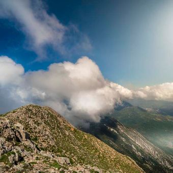 The mountain overlooks more than 60 canyons in the surrounding area, forming one of Europe's largest canyon systems suitable for various outdoor activities.