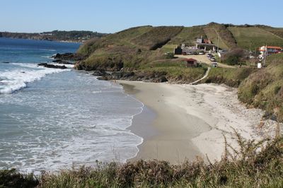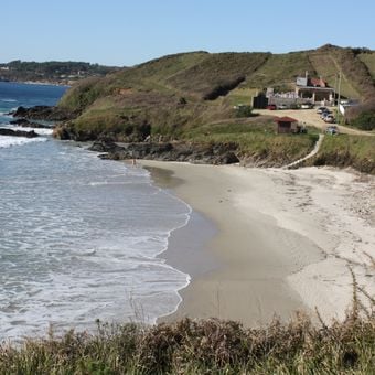 The beach extends 100 meters along the Galician coast with fine white sand and transparent waters of the Atlantic Ocean.