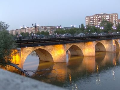 Puente Mayor, Valladolid, Stone arch bridge across Pisuerga River in Valladolid, Spain.