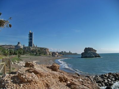 Playa del Peñón del Cuervo, Coastal beach in Este District, Malaga, Spain.