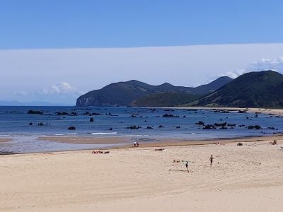 Local residents maintain longstanding traditions of fishing and collecting shellfish near the beach's rocky formations throughout different seasons.