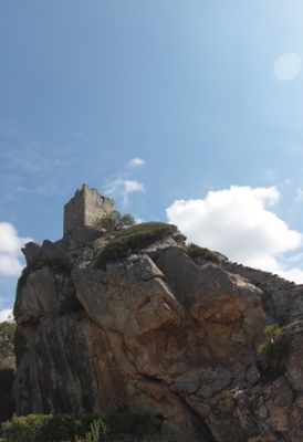 The Torre de la Peña stands on a 25-meter rock formation, featuring rectangular walls and a single chamber with access to a crenellated terrace.