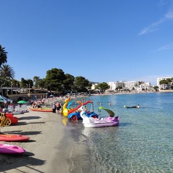 From the beach, visitors can observe the distinctive rocky formations of Esculls d'en Racó and the islands of Galera and Illa des Canar.