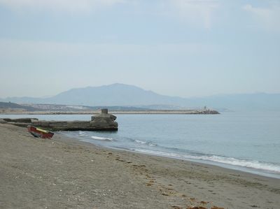 The beach splits into two distinct sections around the fishing port, offering different perspectives of both Mediterranean waters and Gibraltar.