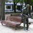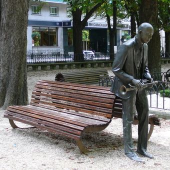 A statue of jazz musician Wynton Marsalis stands in the park, commemorating his creation of Vitoria Suite that combines jazz, flamenco, and classical music.