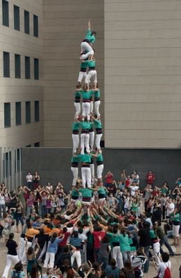 Arreplegats de la Zona Universitària, University human towers group near University Zone, Barcelona, Spain