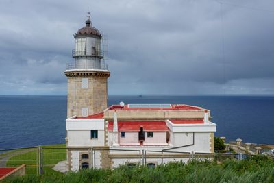 The Matxitxako Lighthouse stands 20 meters tall on Cape Matxitxako, serving as a vital navigation point for vessels crossing the Bay of Biscay waters.