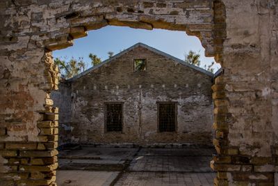 The complex consists of three single-story brick buildings arranged in a U-shape, with a main pavilion parallel to the coast and two lateral wings.