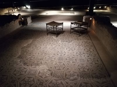 The archaeological site features informational displays and multimedia presentations that demonstrate the layout and functions of different rooms within the Roman house.