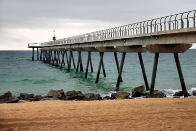 The Pont del Petroli extends 235 meters into the Mediterranean Sea, featuring a concrete structure supported by metal pylons and a 100-square-meter platform at its end point.
