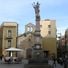 The Santa Eulalia fountain stands in Plaza del Pedro with a marble statue of the saint atop a pyramidal structure made of diverse marbles and Montjuic stone.