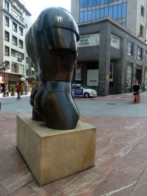 El Diestro is a bronze sculpture distinguished by a blend of abstract and figurative elements, standing approximately three meters tall. The metallic form shows how the artist combined geometric shapes with organic curves.