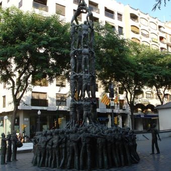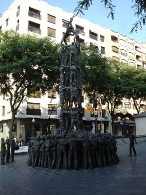 Monument als castellers, Bronze monument on Rambla Nova, Tarragona, Spain.