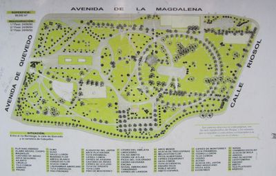The park covers 48,042 square meters with one main entrance on Quevedo Avenue and four additional access points along Magdalena Avenue and Riosol Street.