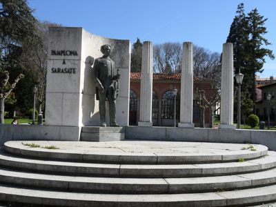 The memorial, inaugurated on April 26, 1959, replaced an earlier modest monument from 1918 located in the Taconera Gardens of Pamplona.