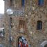 The three-story stone building stands near Park Güell entrance, featuring classical architectural elements with fortified walls and large windows.