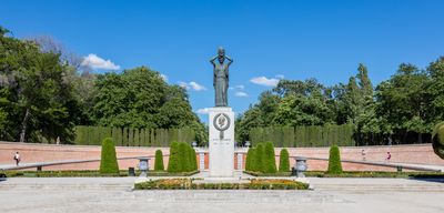 The memorial incorporates a female figure that represents theatrical elements from Benavente's works, which transformed Spanish drama from traditional verse to modern prose.