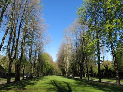 Passeig Maristany, Tree-lined promenade in Camprodon, Spain.