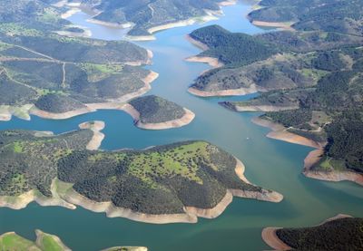 Rumblar Reservoir, embalse de 126 hectómetros cúbicos de capacidad, situado en Sierra Morena, junto a la localidad de Baños de la Encina, provincia de Jaén, España
