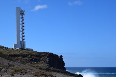 The structure represents the modernization of maritime infrastructure in the Canary Islands, marking a shift from traditional lighthouse designs to contemporary architecture.