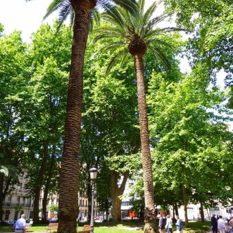 Located opposite the historic Café Iruña, the gardens provide numerous benches under shade trees where local workers gather during lunch breaks.