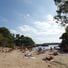 The beach provides essential facilities including showers, toilets, a kiosk, two restaurants, and a dive shop for visitors interested in underwater exploration.