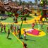 The 5,000-square-meter park contains over 20 outdoor activities including swings, slides, climbing frames, trampolines, foam parties, and mini-golf for children and families.