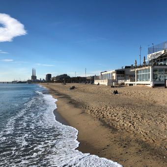 Platja dels Patins de Vela, Urban beach in Badalona, Spain.