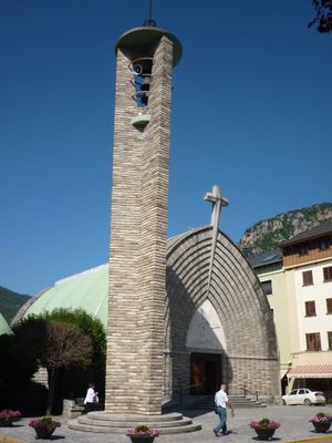 Santa Maria del Pont de Suert stands at 851 meters elevation, featuring architectural elements that reflect modern religious construction principles.