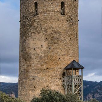 The Castillo de Fantova stands on a rocky promontory with a circular tower measuring eighteen meters in height and walls two meters thick.
