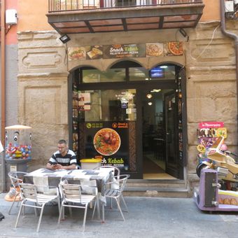 Porta i majòlica d'una casa al carrer de les Vinyes