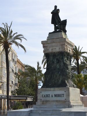 Moret, Bronze and marble memorial in Plaza de San Juan de Dios, Cádiz, Spain.
