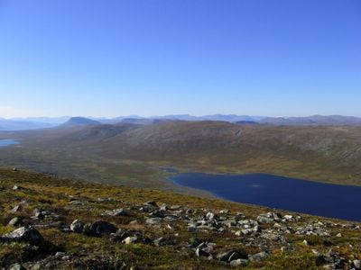 The 2,206 square kilometer reserve contains Finland's highest peaks, including Halti at 1,324 meters above sea level, plus numerous lakes and rivers.