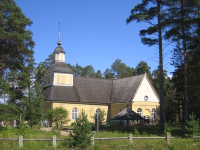A Kalevala memorial stone placed in front of the church marks the historical connections between the regions of Kainuu and Karelia.