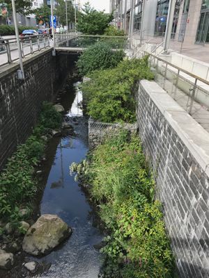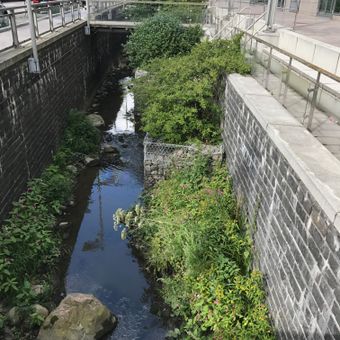 In 2001, the watercourse underwent a significant relocation project, moving approximately one kilometer to accommodate the construction of the Sellon shopping center.