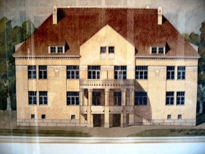 The current manor building exhibits Art Nouveau architecture with a stone facade, designed by architect Karl Lindahl in the early 20th century.