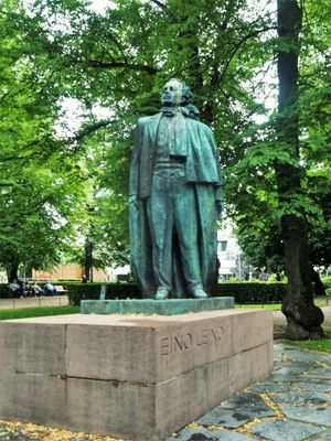 Sculptor Lauri Leppänen created this monument in 1953 to commemorate the 63rd anniversary of Leino's first poem publication in Hämeen Sanomat newspaper.
