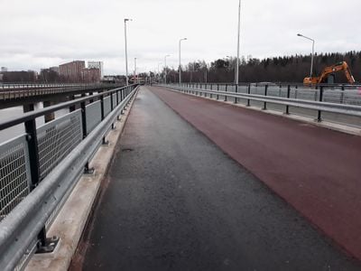 The bridge reflects Helsinki's commitment to sustainable transportation by providing dedicated infrastructure for pedestrians and cyclists separate from motor vehicles.