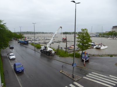 The marina provides boat docking facilities while the four-lane street serves as a vital connection between eastern Helsinki and the city center.